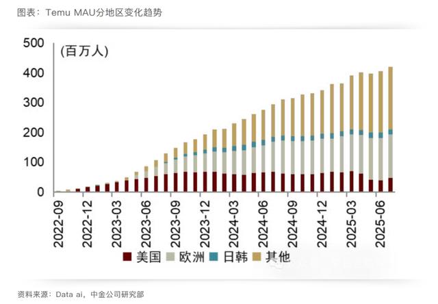 按照中金公司援引BBG Second Measure对美国消费者的调查,Temu人均交易频次两年翻倍,关税后波动不大,而从全球来看,Temu的增长半径非常大,有充分的成长空间。