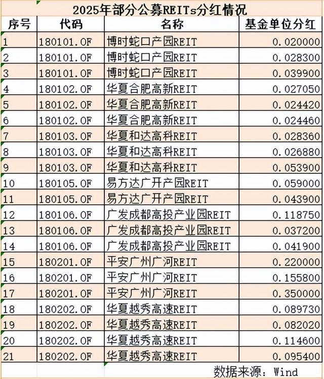 事实上,刚刚过去的2025年,不少优质公募REITs年内多次分红,少数产品跨年份多季度连续分红。比如,华夏越秀高速REIT(180202),据不完全统计,从2023年12月到2025年12月共完成9次分红。这类高分红产品,尤其受到保险、券商等长期机构投资者的偏爱。