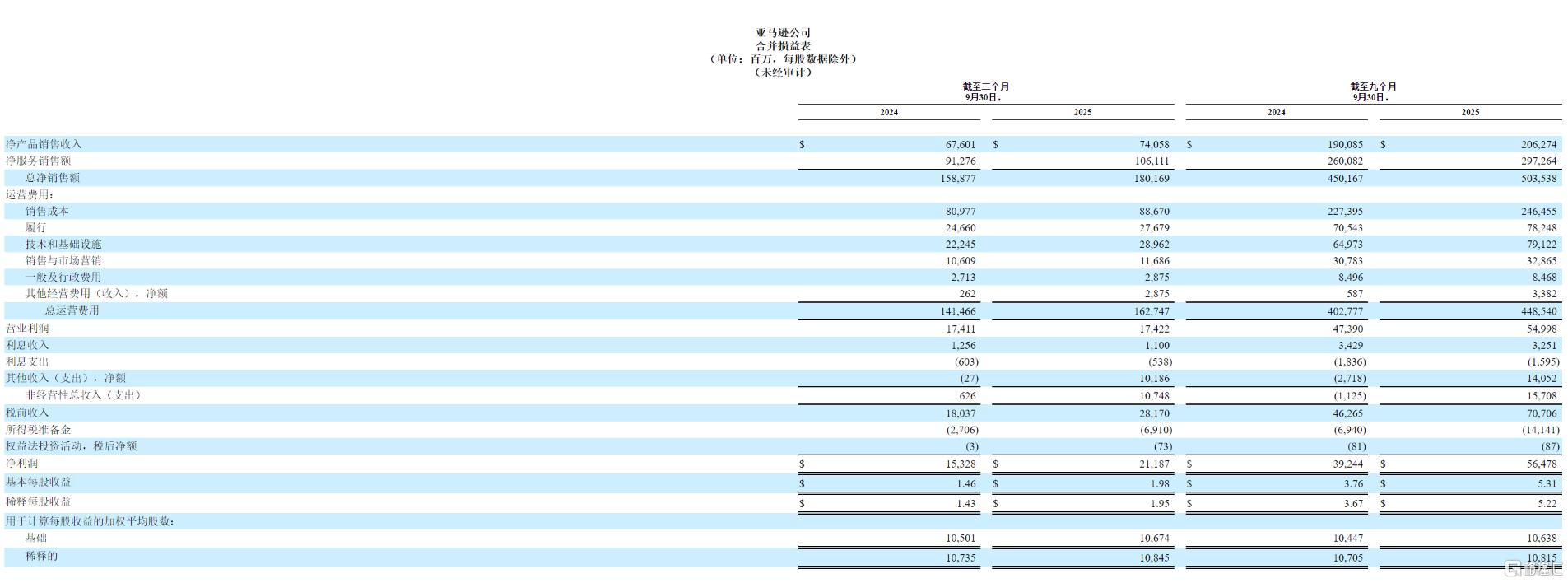 财报显示,亚马逊第三季度净营收1801.7亿美元,同比增长13%,远超预期的1778.2亿美元。