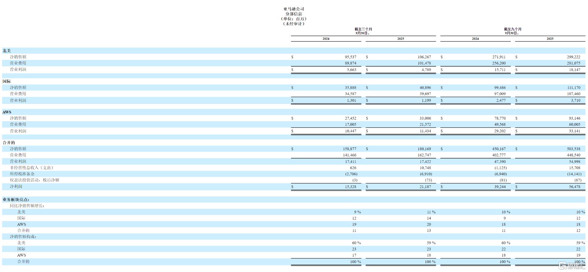 其中,亚马逊Q3业绩超华尔街预期,营收和净利润双双增长;云业务同比增20%,创近三年来最大增幅。