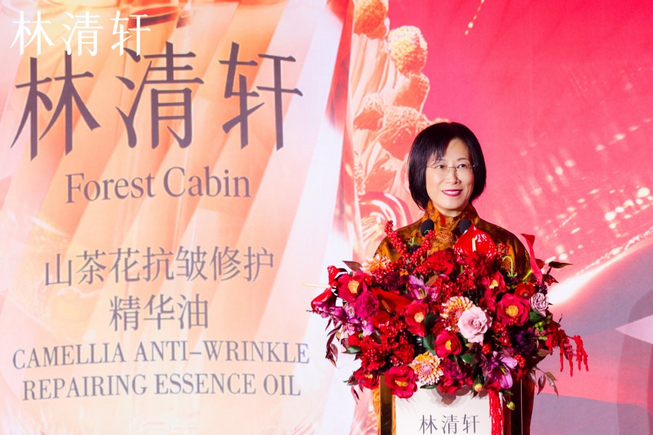 中国香料香精化妆品工业协会理事长、医学博士颜江瑛首先致辞。她代表行业协会对林清轩的成功上市表示祝贺,并指出,林清轩的上市是“十四五”期间我国化妆品产业坚持创新驱动、品牌引领发展战略的具体成果体现。