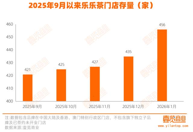 茶咖观察发现,乐乐茶的整体发展态势积极向好。茶咖观察数据显示,乐乐茶的全国门店总数从2025年9月中旬的419家,增长至目前的456家。
