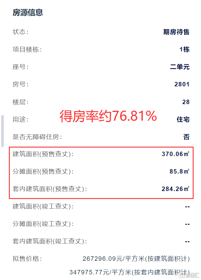 中信信悦湾备案平台显示得房约77%,这就意味着,项目的套内均价已经到约31.74万/平。