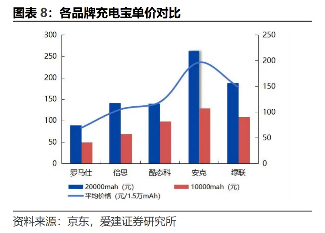 在充电宝风暴前,主打百元左右高性价比市场的罗马仕和倍思,稳居充电宝市场的第一梯队;其次是主打高端市场和海外市场的安克创新,平均售价在150元以上;最后则是以绿联、小米为代表,平均售价在100-150元之间的中端品牌。