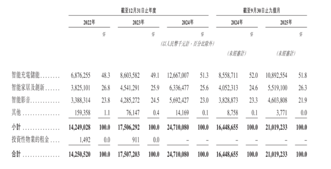 不过,根据安克创新招股书,截至2025年9月30日,包含充电宝的智能充电储能业务,仍占公司整体收入的51.8%,涵盖公司大部分智能创新产品的智能家居及创新业务,在整体收入中的占比并没有太大突破。