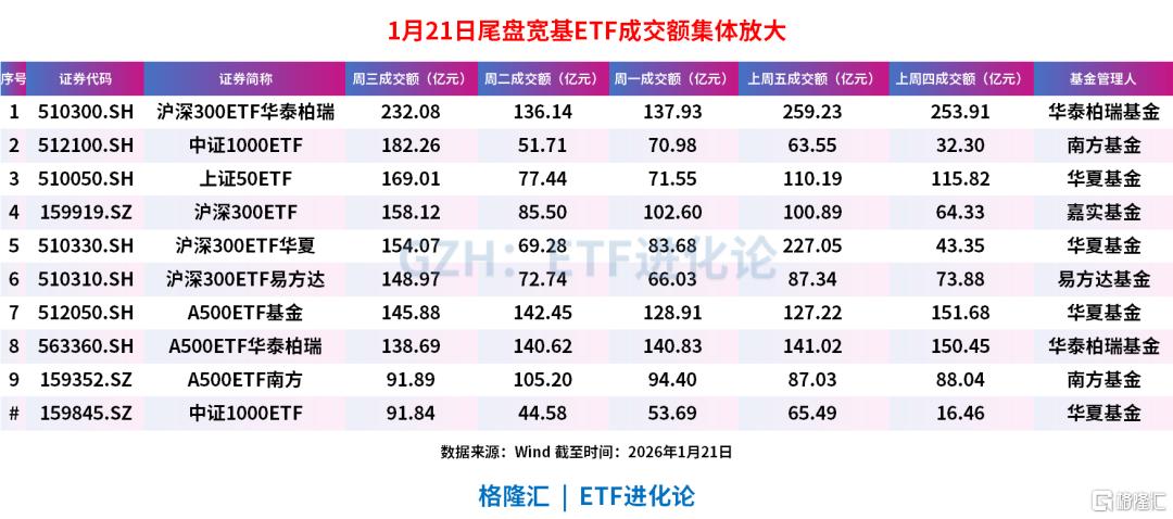 南方中证1000ETF成交额更是爆增2.5倍至182亿元,创下历史天量,上证50ETF成交169亿,嘉实沪深300ETF、沪深300ETF华夏和沪深300ETF易方达均成交超100亿。