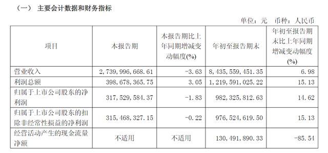2025年前三季度,公司实现营业收入84.36亿元,同比增长6.98%;归母净利润9.82亿元,同比增长14.62%;扣非归母净利润9.77亿元,同比增长15.13%。