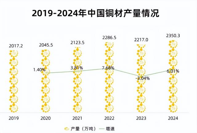 特高压产业链上游受电网建设加速驱动,其中铜和铝作为核心导体材料首当其冲。2024年,中国铜材产量达2350.3万吨,铝材产量为6783.10万吨。