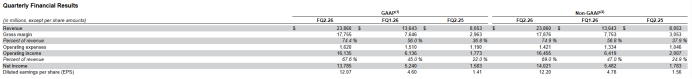 盈利端同样远超预期,第二季度,公司毛利率达74.4%,上年同期为36.8%;净利润为137.85亿美元,上年同期为15.83亿美元;摊薄后每股收益12.07美元。