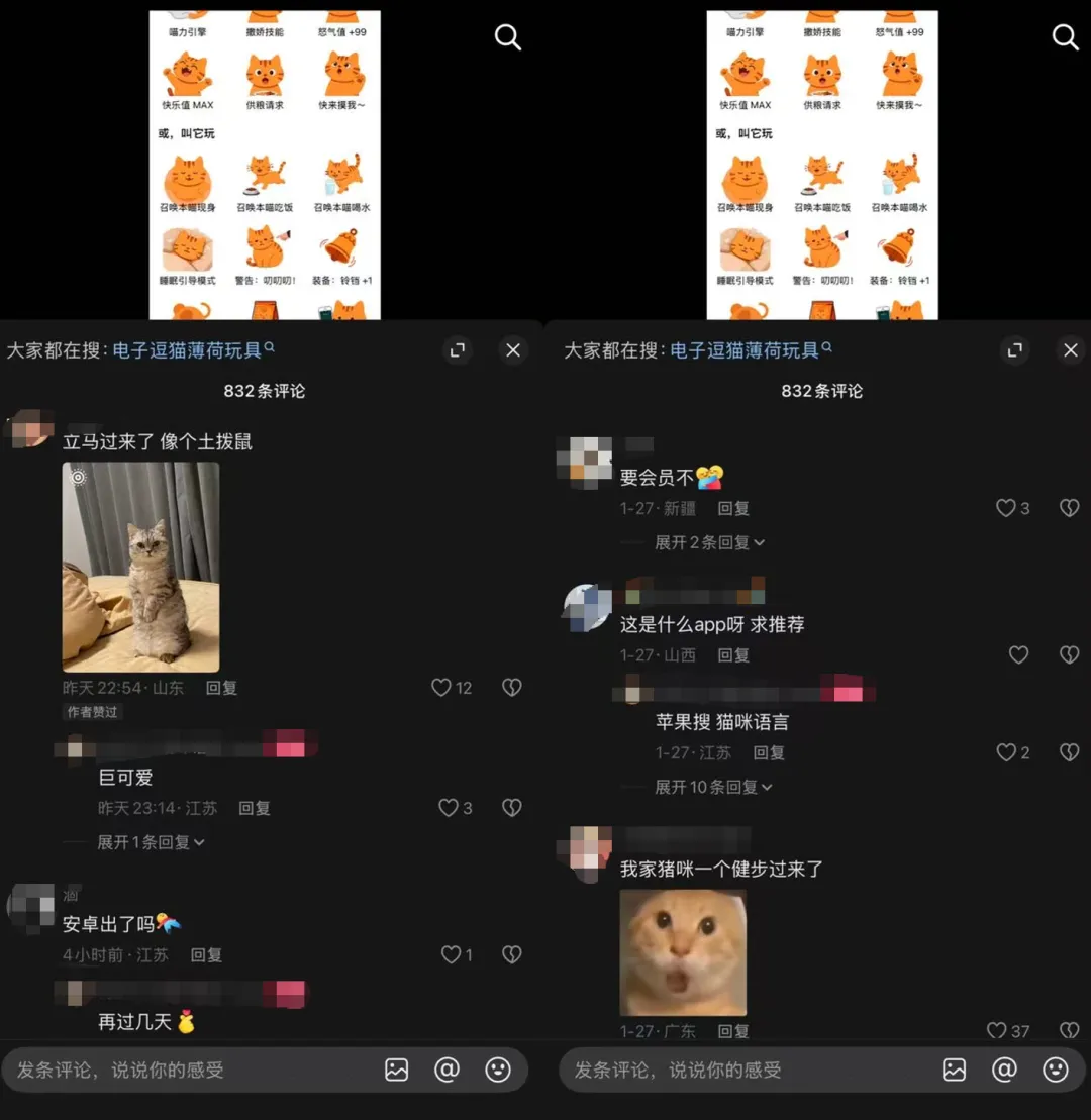 在社交媒体平台中,大量用户分享了实际使用体验,普遍反馈称“功能真实有效”,有用户表示:“每次打开声音,家里的猫马上就跑过来了。”同时,不少用户也在评论区留言询问,强烈呼吁开发团队尽快推出安卓版本,以满足更广泛宠物主人的使用需求。