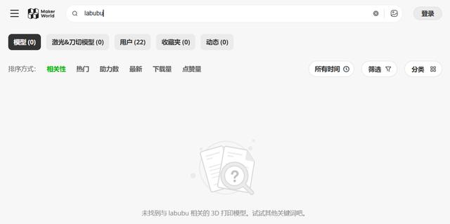 截至发稿,拓竹科技暂未对诉讼进行公开回应,但MakerWorld上已经无法搜索到任何与“拉布布”或“Labubu”相关的3D打印图纸,星星人、Molly等泡泡玛特旗下其他IP的搜索结果也都为0。