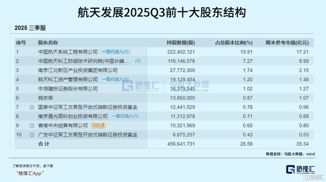 航天发展公司资料显示,第一大股东是中国航天系统工程有限公司,航天科工集团通过该公司及中国航天科工防御技术研究院等关联方,合计间接持有公司约21.02%的股份,使其能优先获取集团的研发支持和订单资源。