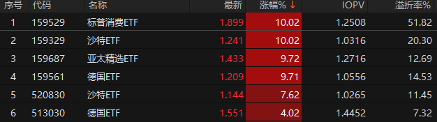 和去年1月份类似,散户又开始炒作跨境ETF,今天标普消费ETF、沙特ETF涨停,前者溢价率已经达到了51%,后者溢价率超过20%。去年炒作后是一地鸡毛,但不妨碍今年继续炒作,所以散户亏钱能怪谁?明知是坑还要踩上去。