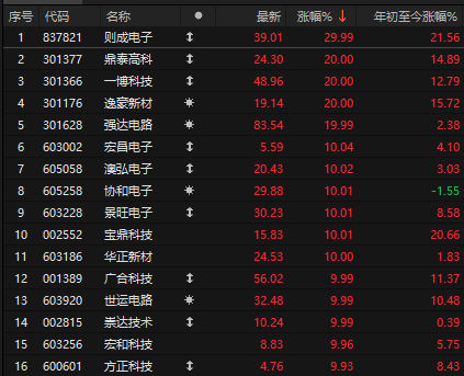 不过,今天A股PCB板块依旧非常强势、则成电子、鼎泰高科、一博科技、景旺电子等多股涨停。