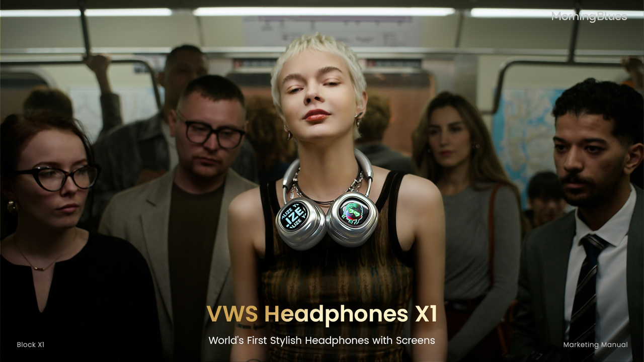 MorningBlues全球首款搭载“灵动屏”的VWS视觉穿戴立体声耳机。吸引目光的,并不只是声音,而是戴在耳边、会“动”的视觉表达。