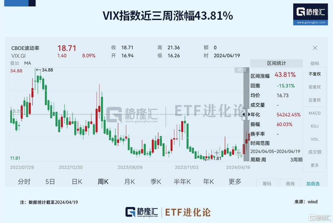 恐慌指数VIX大幅飙升,VIX指数是衡量标普500指数近期波动预期的所谓“恐慌指标”,该指数过去三周期间累计涨幅达43.81%。