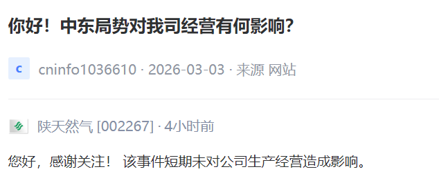 陕天然气 [002267] :该事件短期未对公司生产经营造成影响。