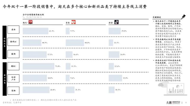 久谦的数据也显示,双11第一阶段,淘宝在服饰、美妆等优势类目继续保持主导。