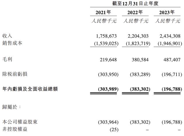 值得一提的是,方舟健客持续处于亏损状态。2021年、2022年和2023年,该公司的营收分别为17.59亿元、22.04亿元和24.34亿元,毛利分别为2.20亿元、3.81亿元和4.87亿元,净利润分别为-3.04亿元、-3.83亿元和-1.97亿元。