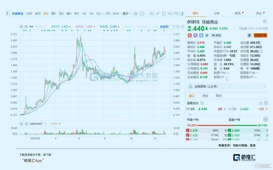 和上述这些巨头相比,有些企业的市值虽然小一些,但股价涨幅却更强,尤其是黄金相关的概念股。例如,珠峰黄金(01815.HK)年内涨12.5倍,灵宝黄金(03330.HK)年内涨近6.2倍,潼关黄金(00340.HK)涨逾5倍,此外录得翻倍上涨的更是比比皆是。