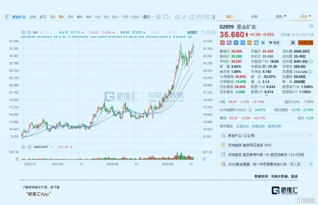 比如大摩发布研报称,恢复对紫金矿业的覆盖,给予“增持”评级,目标价为46.1港元。大摩指出,紫金矿业独特地方在于铜矿、金矿产量录得增长,且具有成本控制良好及估值吸引。