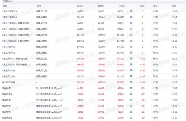 正极材料价格