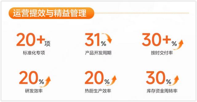 为此,万和成立精益制造中心,推进多基地联合精益管理,系统化导入自动化设备,深化VBS体系建设。依托LCIM方法论推动制造模式升级,工业机器数量由395台增至424台,设备综合效率从57%提升至73%。“标准化、精益化、自动化、数字化、智能化”五化建设的方法论,形成一套跨品类的操作系统,支持多品类制造,确保战略的推进。