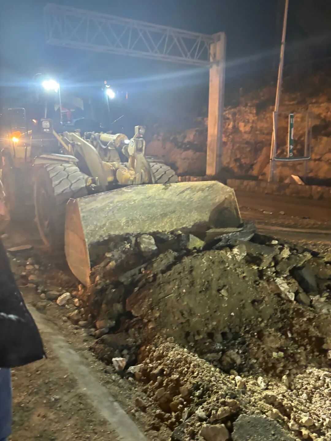 爆炸后,路面碎片四散,推土机进场清理瓦砾,空气里仍弥漫着冲击后的狼藉感。