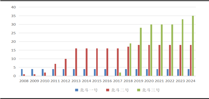 2008-2024年我国北斗导航卫星已发射数量