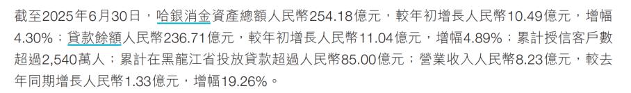 据哈尔滨银行半年报显示,2025年上半年哈银消金资产总额达254.18亿元,较年初增长4.3%;贷款余额236.71亿元,较年初增长4.89%;营业收入8.23亿元,同比增长19.26%。这一业绩表现表明,尽管面临战略调整和人事变动,哈银消金仍保持了基本面的稳定。同时,哈银消金作为高新技术企业的技术积累为自营业务重启提供了重要支撑。