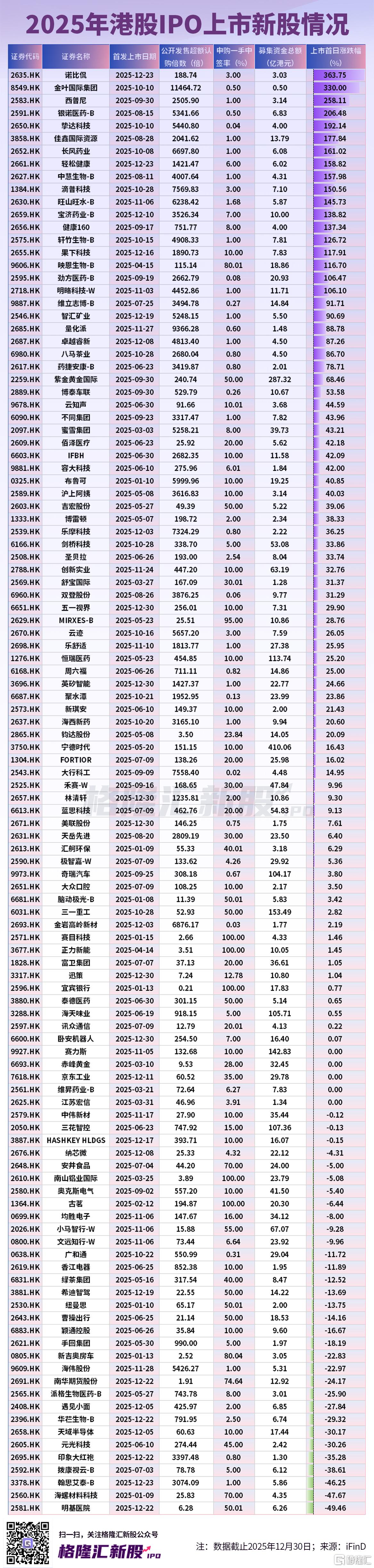 接下来让我们一起来看看2025年港股IPO的具体情况。