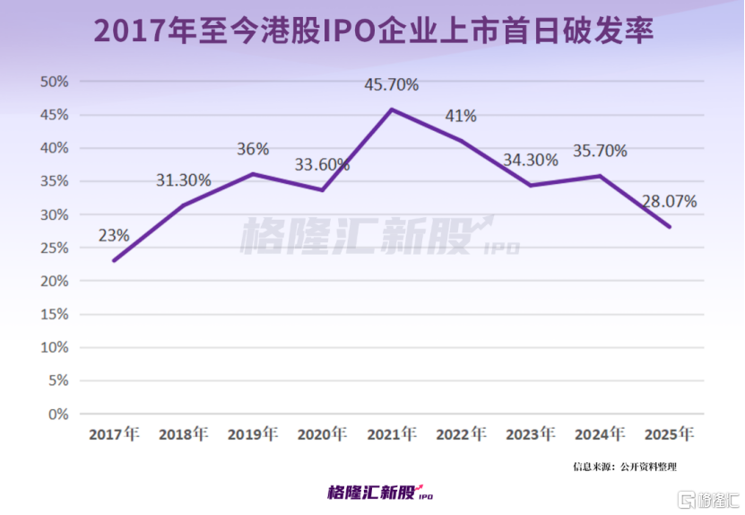 从趋势来看,港股IPO在2021年创下45.7%的破发率高峰后,此后几年破发率整体有所下降。