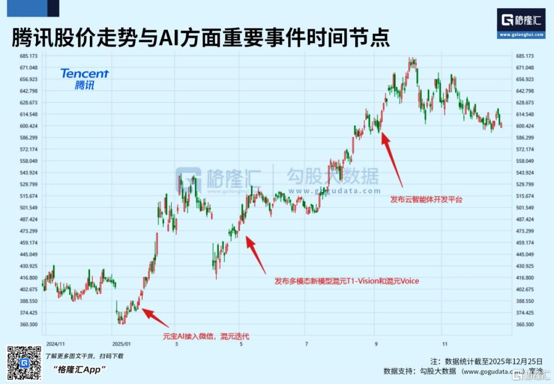 但腾讯2025年第三季度经调整净利润同比增长19%,股价涨幅显著跑赢EPS增速,说明其AI价值正在加速释放。