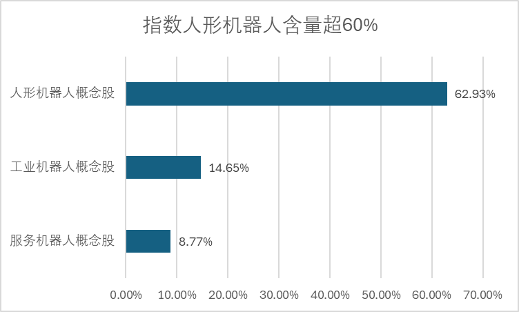 图:指数人形机器人含量超60%(来源:Wind,持仓数据截至 2025.11.6,相关概念成分股划分的对比基准分别是万得人形机器人概念指数、工业机器人及工控系统指数(中信)、万得服务机器人指数。)