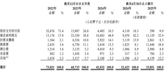 而根据招股书(63页),微亿智造称,“为吸引及挽留人才,并为我们的长远发展向僱员提供激励,我们已定期采纳员工激励计划”。其中,2022年、2023年、2024年度和2025年上半年分别录得以股权结算的股份开支约60万元、6580万元、560万元和30万元。