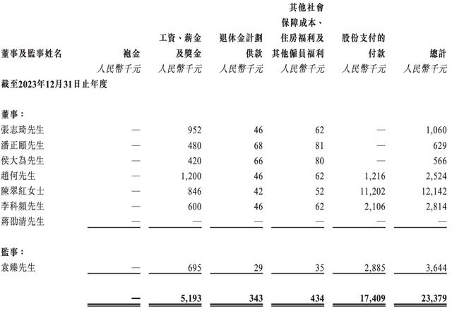 就微亿智造而言,身为执行董事兼副总经理的陈翠红于2023年从微亿智造取得工资(工资、薪金及奖金)84.6万元,退休金计划供款4.2万元,其他福利5.2万元,而股份支付的付款则为1120.2万元,薪酬合计1214.2万元,超过1200万元。