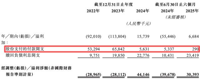 尽管2022年、2023年处于亏损状态,但微亿智造对个别高管十分慷慨。招股书(P11页)显示,微亿智造2022年、2023年分别产生股份支付的付款开支5329.4万元、6584.2万元,2024年度约为563.1万元,2025年上半年则为29.0万元。
