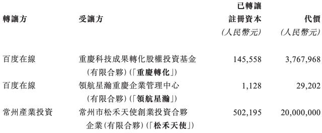 而在2025年5月,百度则向无锡洪泰、重庆转化、领航星瀚分别转让所持微亿智造的股权,分别作价3000万元、376.7968万元、2.9202万元,合计约为3380万元。转让完成后,百度在线(即百度)不再持有微亿智造的股份。