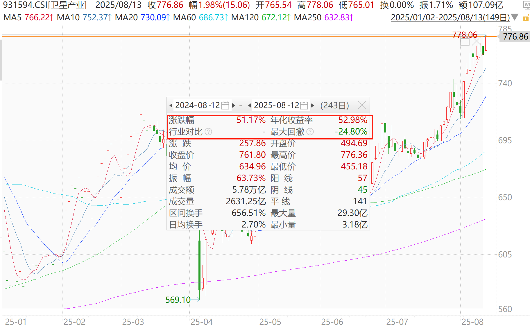 指数重仓呈现高科技集群布局,计算机(15%)+电子(12%)+通信(12%)精准卡位核心环节,截至8月12日近一年涨幅超51%,显著跑赢航天军工大类指数。