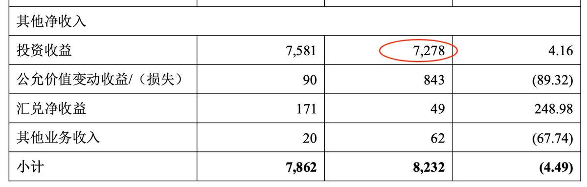 值得一提的是,2025年中报里,显示的2024年中期的投资收益为72.78亿元,而在2024年中报里,显示的2024年中期的投资收益为69.71亿元,本文以原来报表为准。