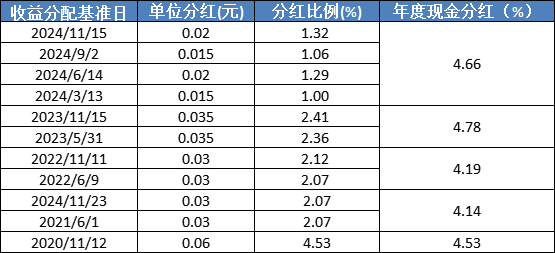 此外,中证红利ETF(515080)近日已发布了第四季度现金分红公告,每十份分红0.20元,分红比例约1.32%,其中权益登记日为2024 年11月29日,现金红利发放日2024年12月5日。