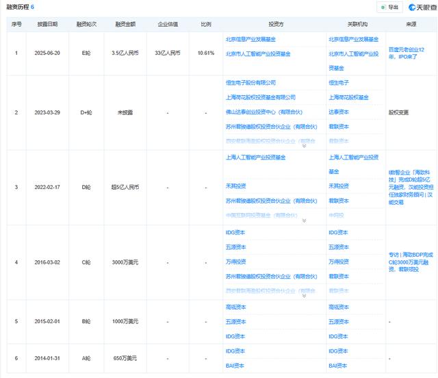 海致科技不仅迅速获得了来自百度系资源的支持,更吸引了包括IDG资本、BAI、君联资本、高瓴等一线投资机构的持续加注。2025年6月,海致科技完成了3.5亿元E-2融资,投后估值为33亿元。