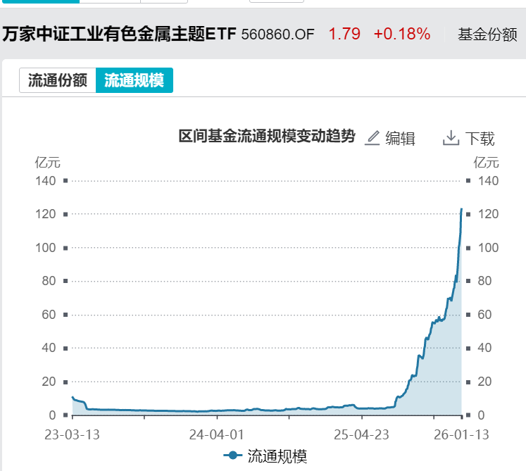自去年7月以来,工业有色ETF(560860)连续获资金大量申购,场内份额屡屡突破,最新规模增至123.53亿元,为当前全市场首只且唯一跟踪中证工业有色金属主题指数的ETF产品。