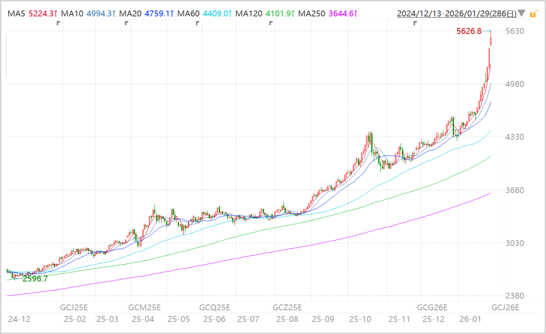 与此同时,白银市场也经历了自1980年亨特兄弟操纵事件以来最严重的流动性困局。连续逼仓行为推动银价一度创下45年新高,反过来也对金价形成了一定支撑。