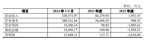同时,松发股份预计2024年度营业收入为2.54亿-2.95亿元,前一年为2.06亿元;扣除与主营业务无关的业务收入和不具备商业实质的收入后的营业收入为2.52亿-2.93亿元,低于3亿元。