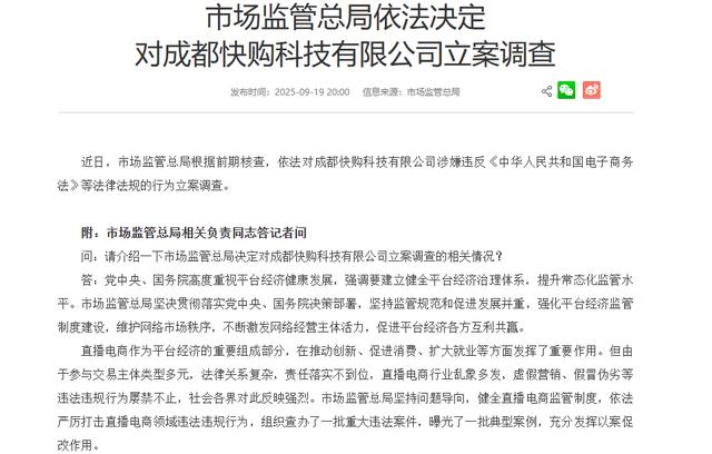 9月,据市场监管总局官网披露,市场监管总局依法决定立案调查快手旗下全资子公司成都快购科技有限公司(运营“快手小店”),指出直播电商行业存在“虚假营销、假冒伪劣”等违法违规行为。