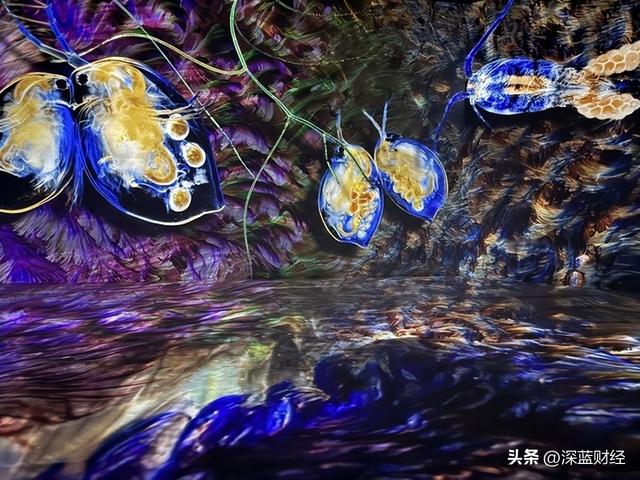 该空间以"宇宙共鸣箱"为设计理念,构建了一个全包围六面投影的540°沉浸式视听空间。观众走进展厅,不再是旁观者,而成为了"共鸣体"的一部分,在动态光影与环绕音效中全身心感受影像的魅力。通过13台FP-ZUH6000投影机的多机联动,实现了六面墙体与地面的巧妙衔接与超广视角投影,创造出一种无限延伸的错觉:一望无际的海洋、层次分明的洞窟空间、壮观的火山喷发、如同万花镜一般无限延伸旋转的城市……在这里,影像的边界被打破,万物之光在空间中交织、碰撞、共鸣,为观众带来一场从物理空间到精神世界的沉浸之旅。