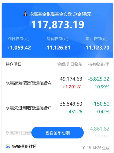 近日,永赢基金基金经理张璐在支付宝蚂蚁理财社区公开个人实盘操作,引发投资者热议。