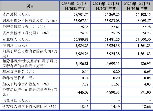 2020年、2021年和2022年,安凯微的营收分别为2.70亿元、5.15亿元和5.09亿元;净利润分别为1361.83万元、5924.38万元和3984.26万元,扣非后净利润分别为486.95万元、4699.11万元和2196.81万元。