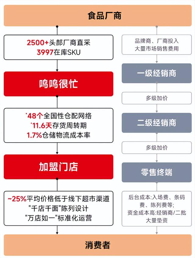 从供应链效率角度看,鸣鸣很忙的运营体系以“快”换“利”。